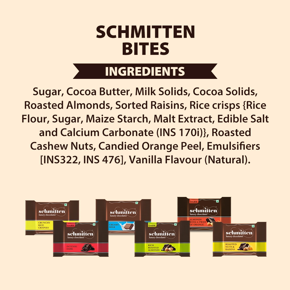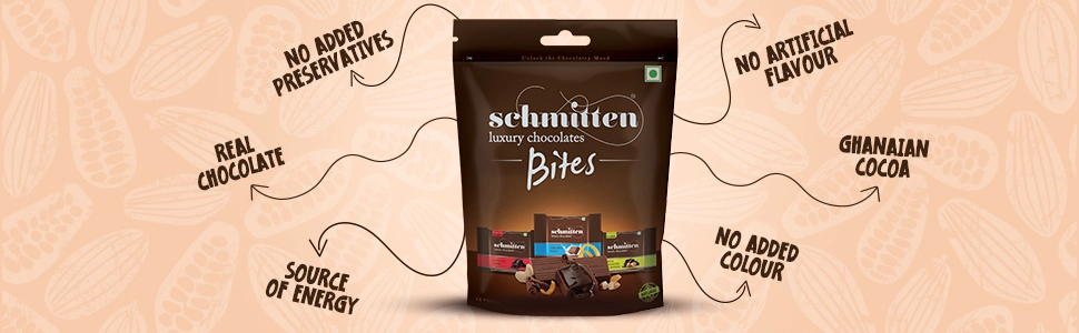 Unwrap delight with Schmitten Bites, where intense chocolate pleasure is perfectly packed into petite pieces. These aren't just chocolates; they're tiny treasures of rich Ghanaian cocoa, sealed for freshness and ready for any adventure. Whether it’s a quick craving, a midday pick-me-up, or a secret stash for your travels—these little bites are your go-to companions for instant chocolate joy. No mess, no fuss—just pure, pop-and-melt pleasure wherever life takes you. Because great taste doesn’t need a reason. It just needs a scrumptious bite.