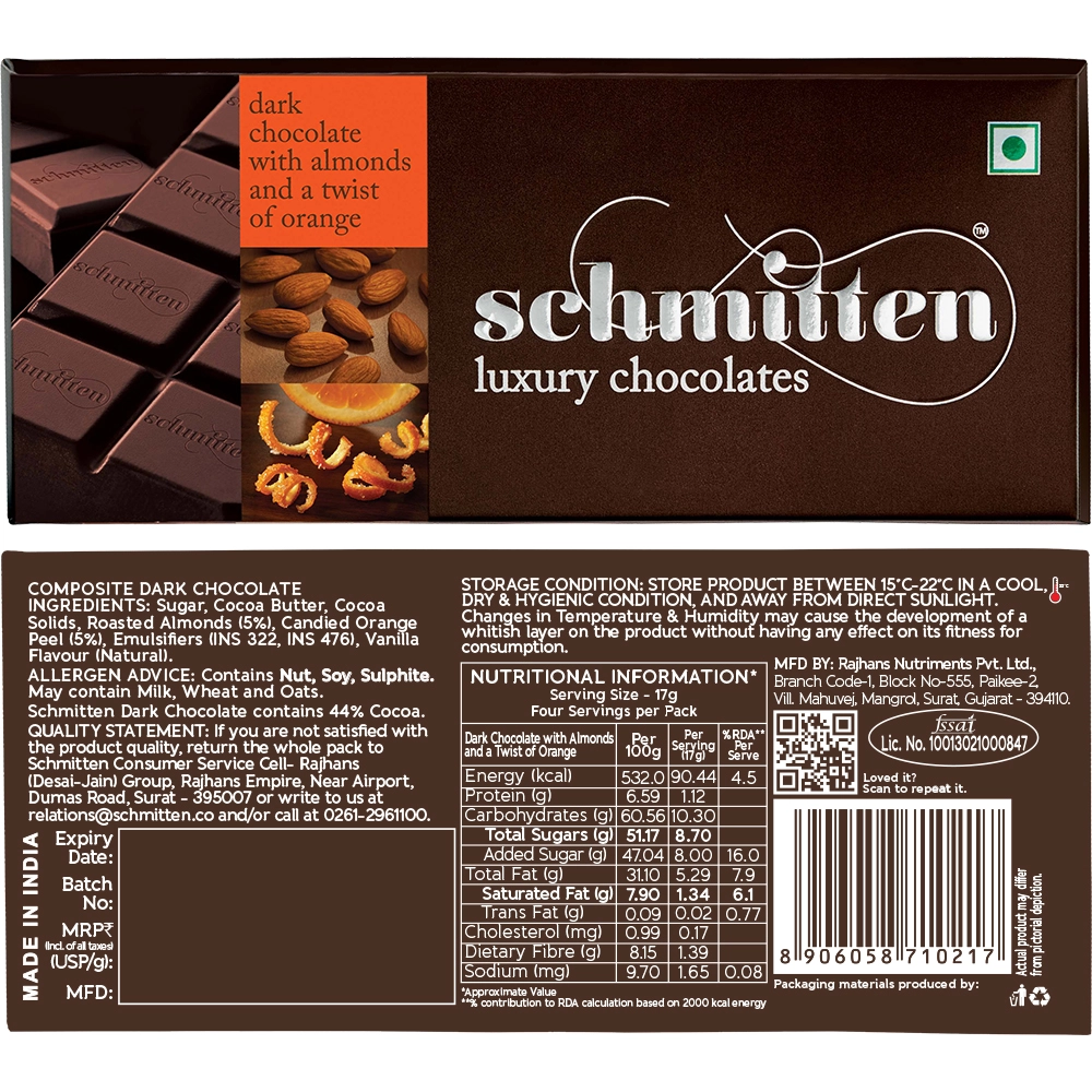 Dark Chocolate with Almond & Twist Of Orange 70g