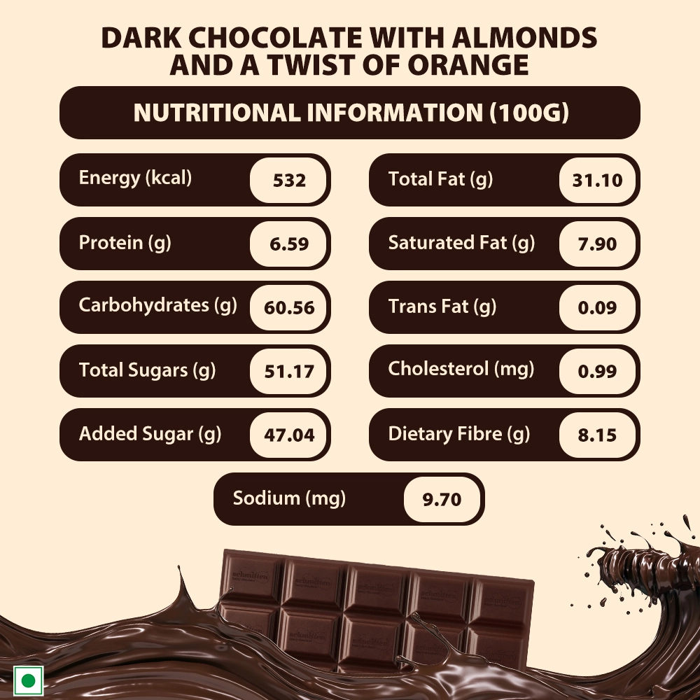 Experience the allure of our Dark Chocolate with Almonds & a Twist of Orange—a refined indulgence where rich, bittersweet dark chocolate embraces the crunch of premium California Almonds and the vibrant zest of sun-ripened orange peel. Made with Ghanaian cocoa, this distinctive bar delivers a layered tasting journey—where nutty crispness meets citrusy brightness, all wrapped in a smooth, velvety dark chocolate base. It's an elevated chocolate experience crafted for those who crave a sophisticated twist.