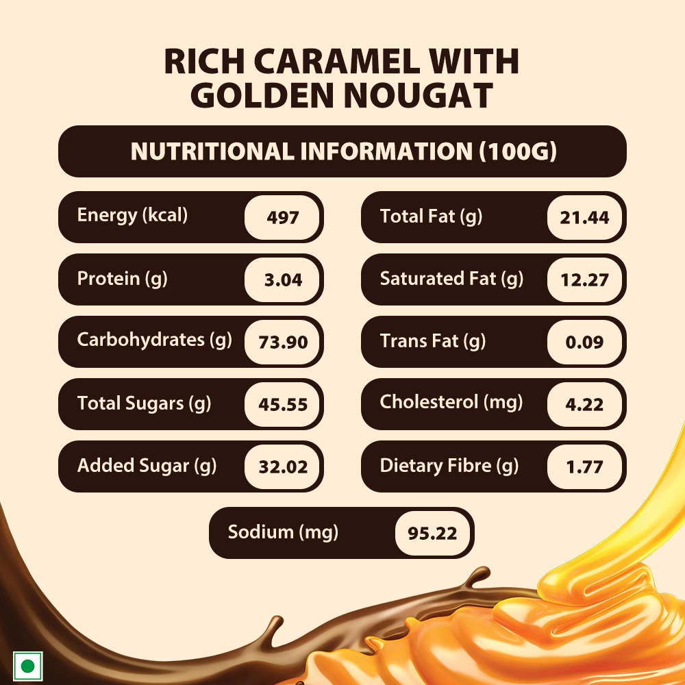 Unwrap a golden moment with our Rich Caramel & Golden Nougat bar— a luxurious medley where silky caramel and airy nougat unite beneath a smooth layer of fine chocolate. Each bite melts effortlessly, revealing a harmonious blend of mellow sweetness and soft chew, crafted to perfection for the discerning palate. It’s a timeless classic, reimagined for those who seek comfort, richness, and indulgence in every bite.