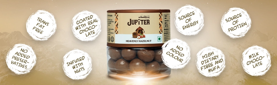 A divine union of crunch, cocoa, and clean indulgence! Step into a realm of rich, nutty bliss with Jupiter Heavenly Hazelnuts—a sensational combination of perfectly roasted hazelnuts encased in a velvety layer of premium dark chocolate. Each bite offers a delightful contrast of textures and an irresistibly balanced flavour, making it the ideal treat for nut lovers and chocolate connoisseurs alike. Crafted for those who crave indulgence with a nutritious twist, this jar is your everyday escape into guilt-free luxury.