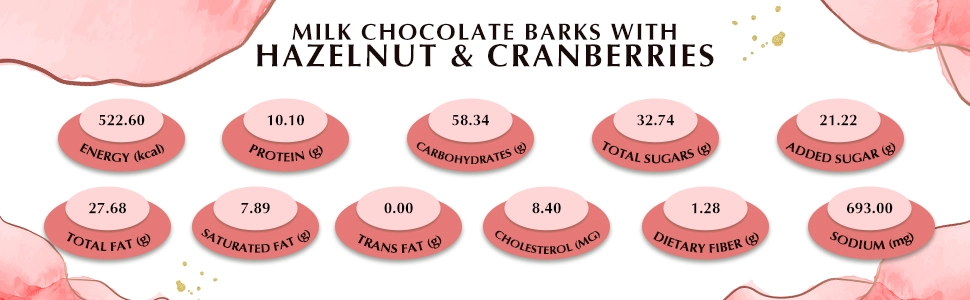 Milk Chocolate Barks with Hazelnut and Cranberries