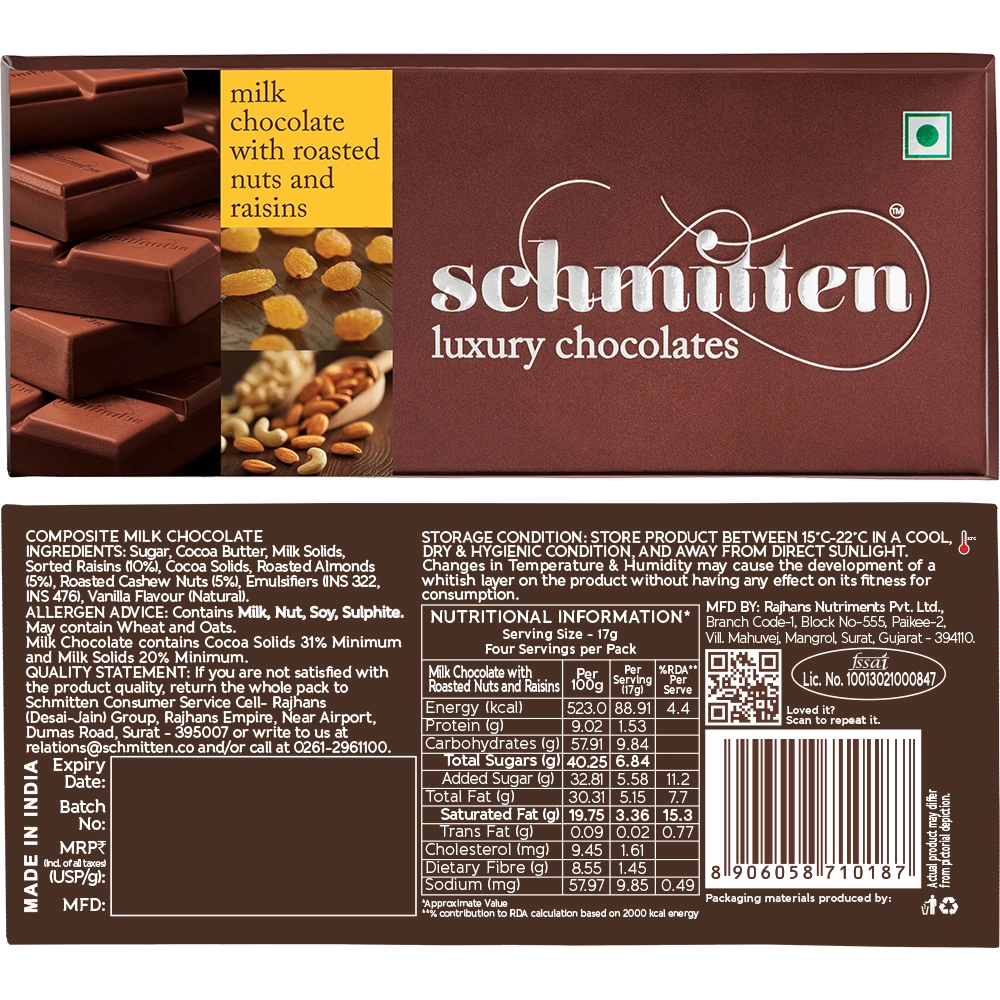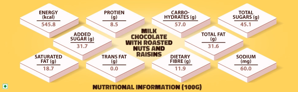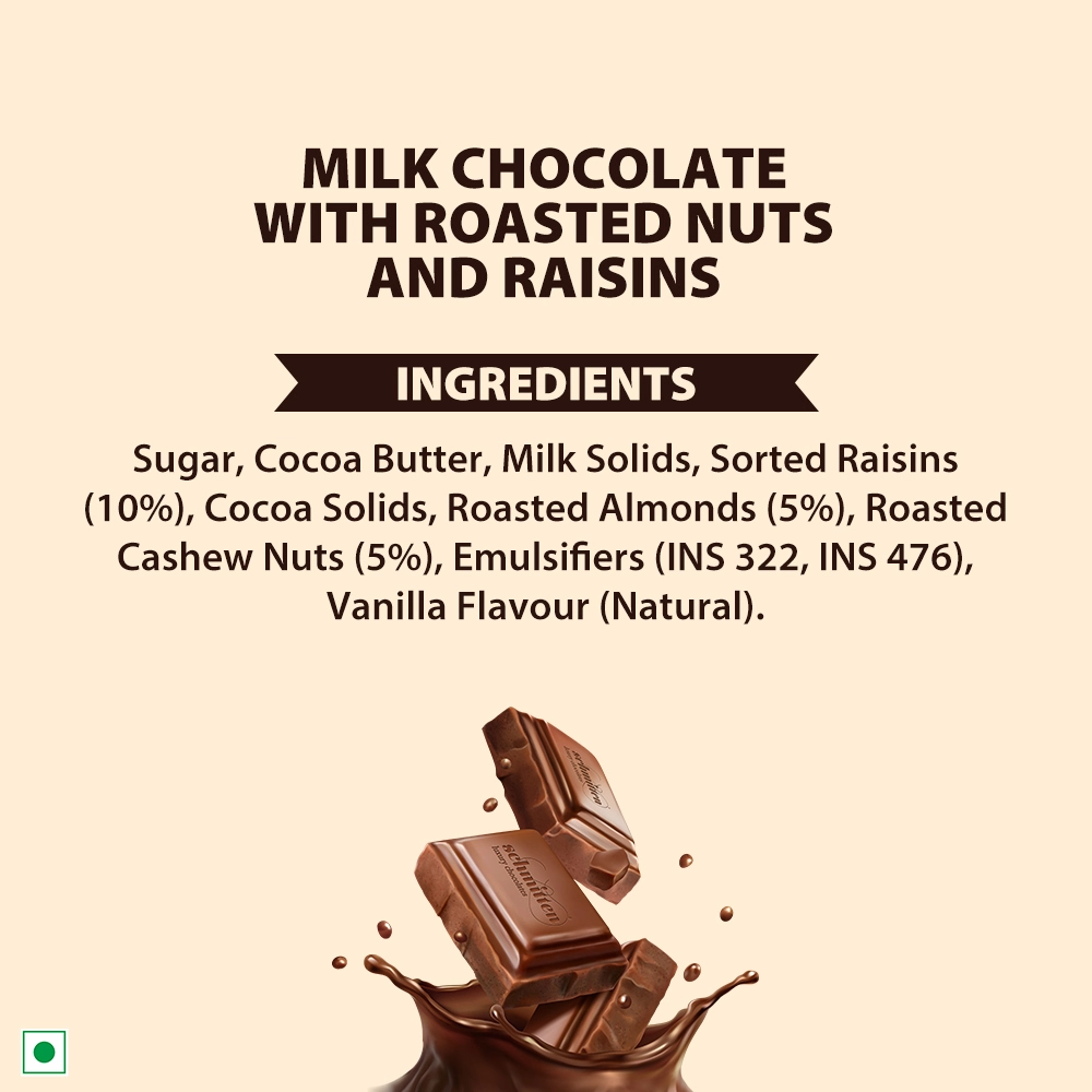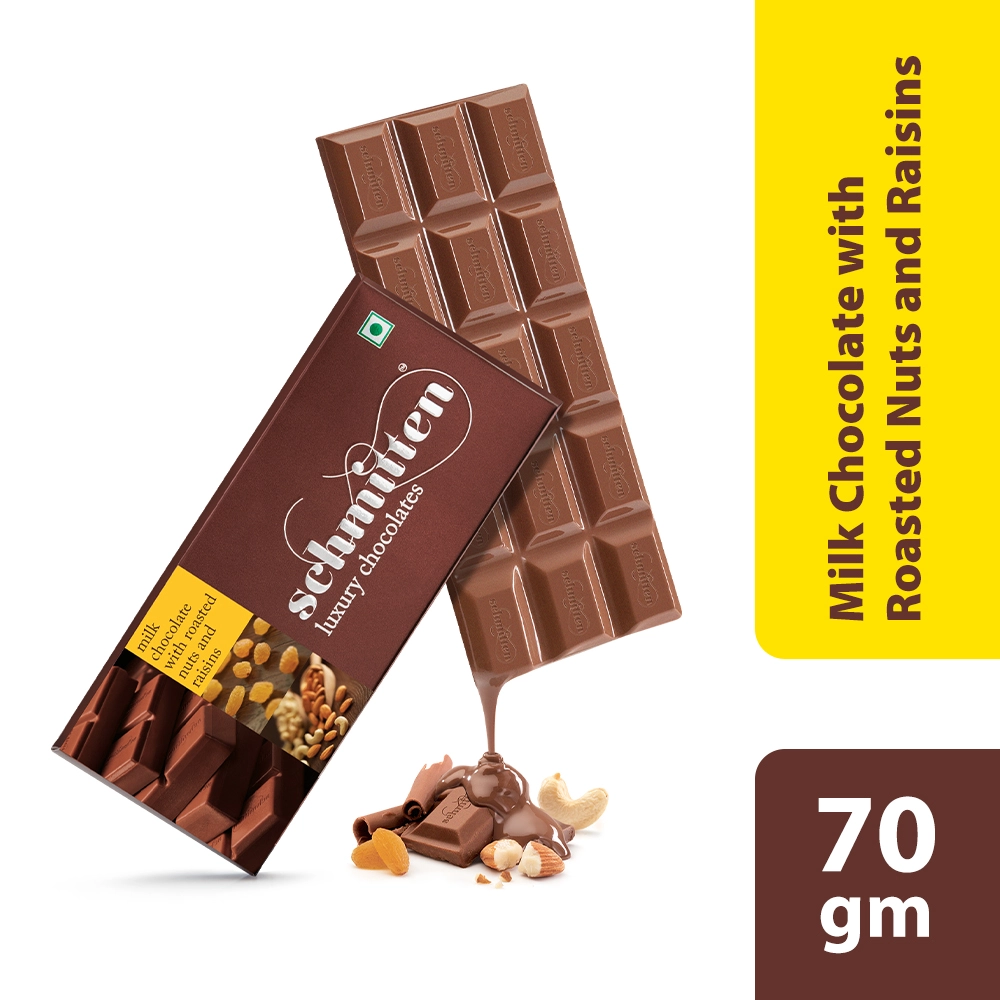 - Smooth, creamy milk chocolate blended with roasted nuts and raisins